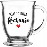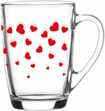 KUBEK DO KAWY HERBATY SZKLANY Z UCHEM ALA 300ML SERDUSZKA PREZENT
