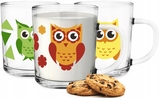 KOMPLET 3SZT KUBEK DO KAWY HERBATY SZKLANY Z UCHEM TOLA SOWA 3x200ML