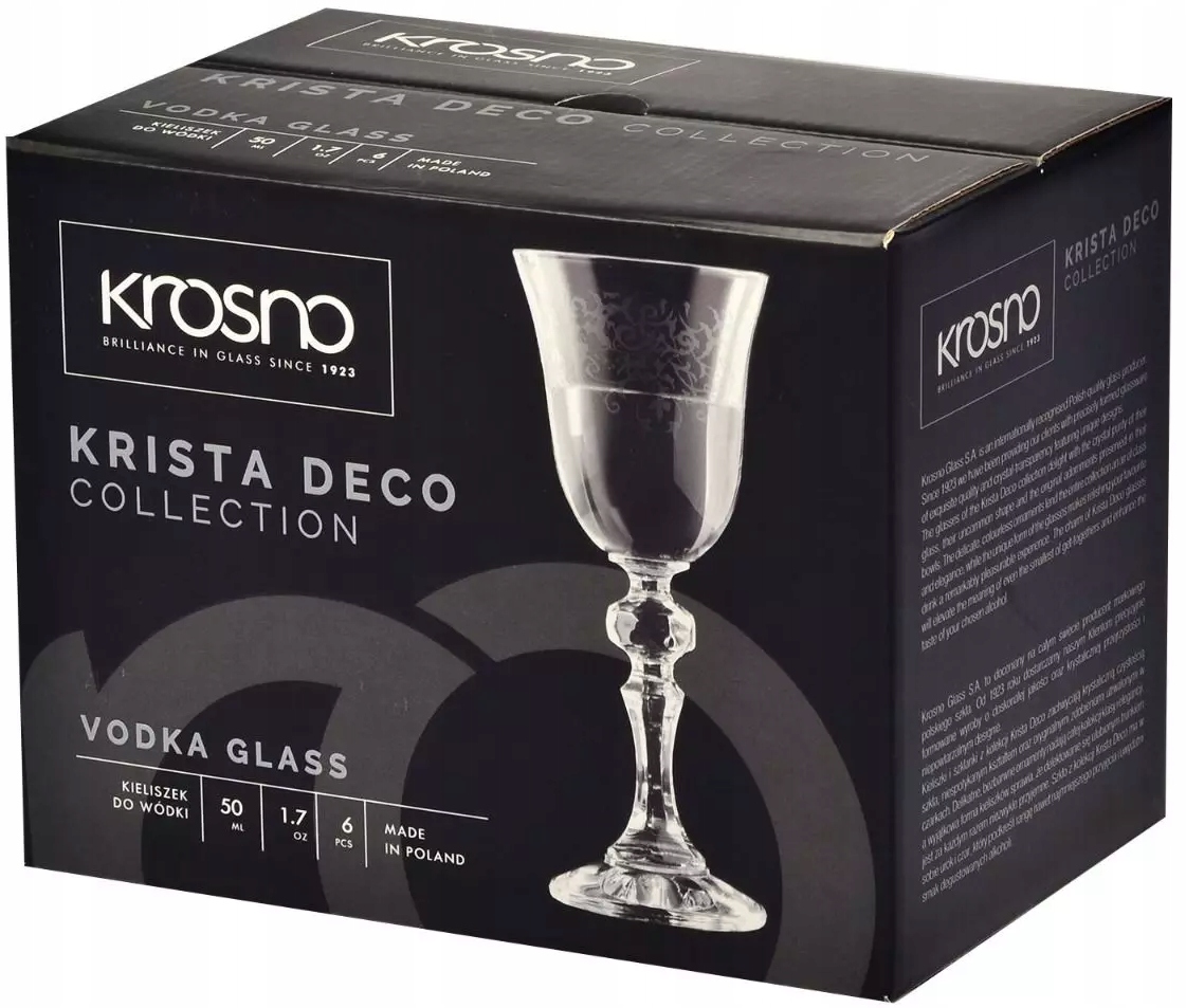 KIELISZKI DO WÓDKI NALEWKI LIKIERU 50ML KRISTA DECO NA NÓŻCE KROSNO