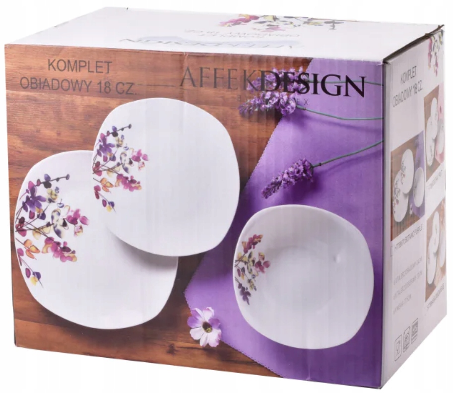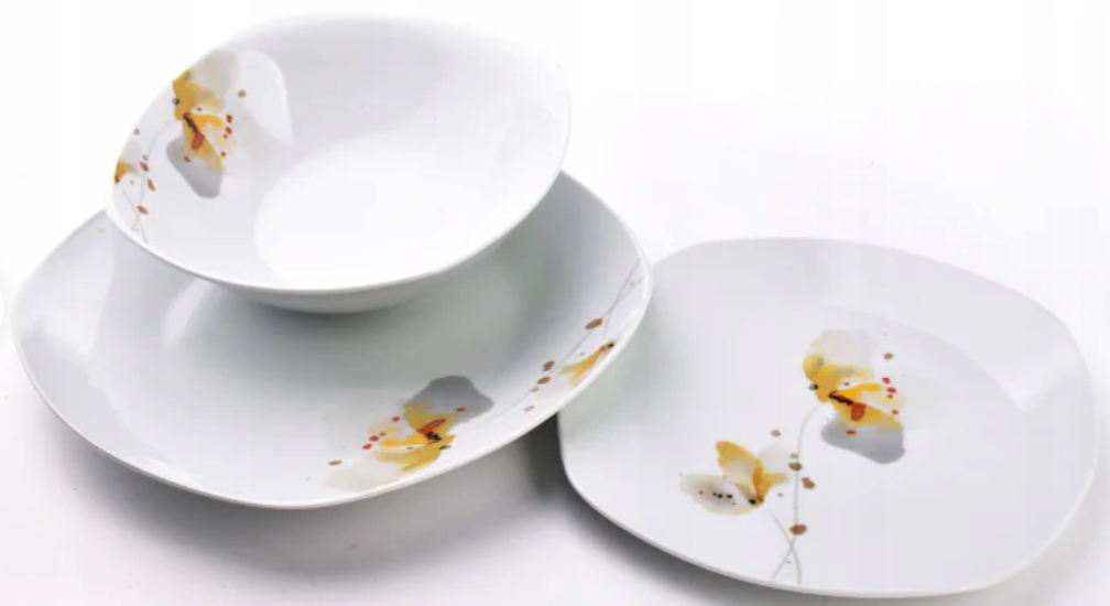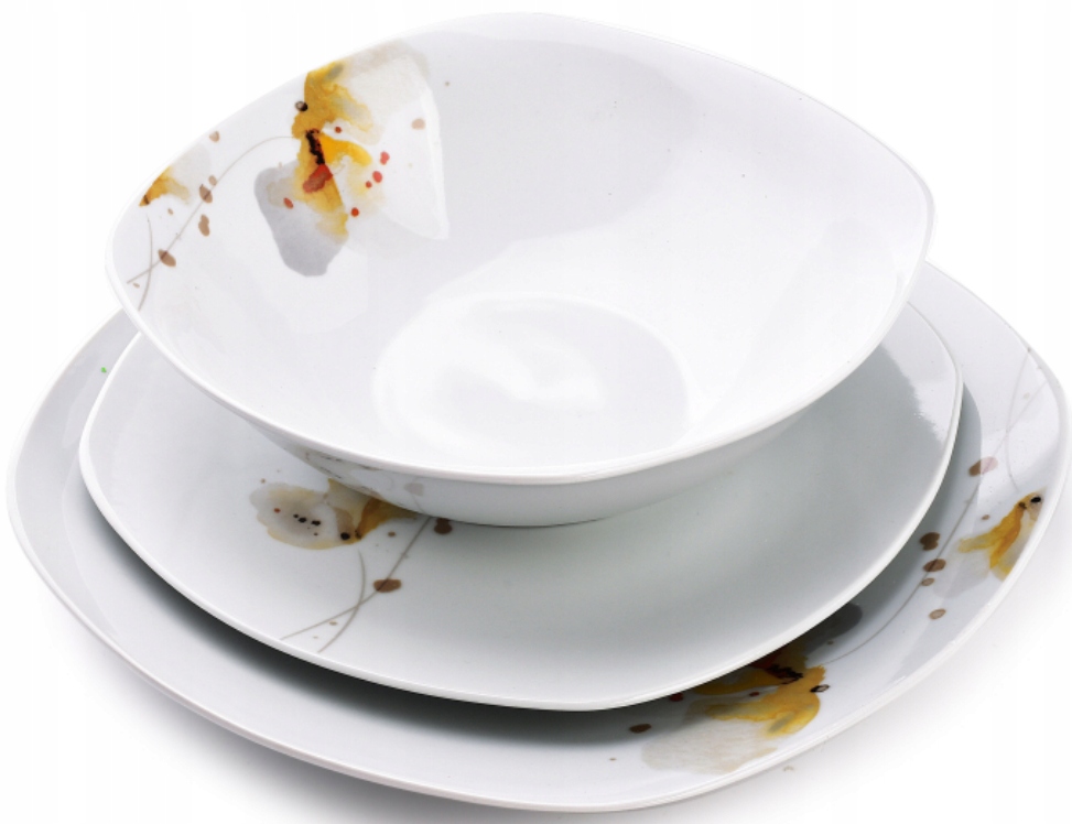 KOMPLET SERWIS OBIADOWY ZESTAW TALERZY 18EL KWADRAT BIAŁY WZÓR