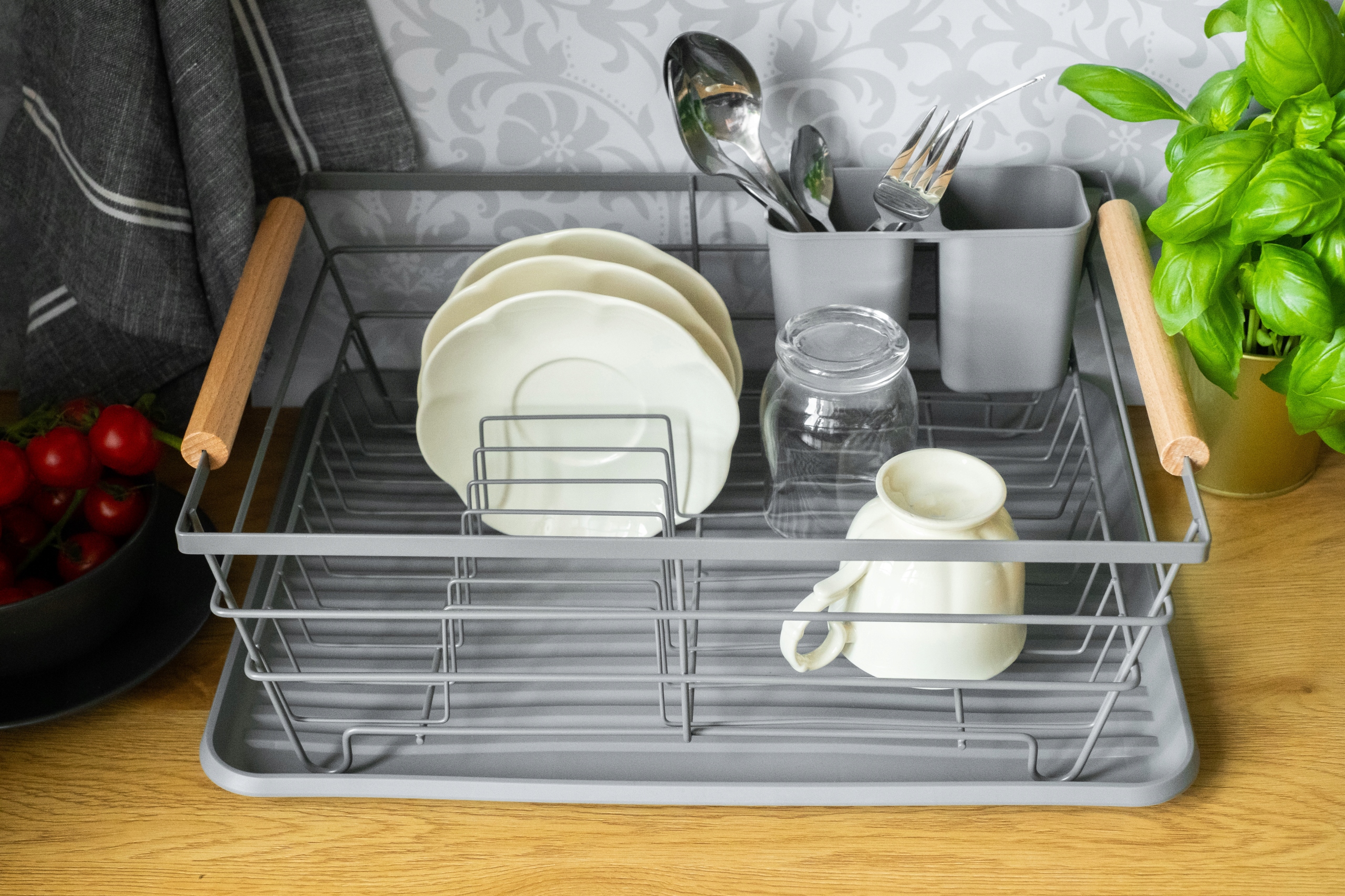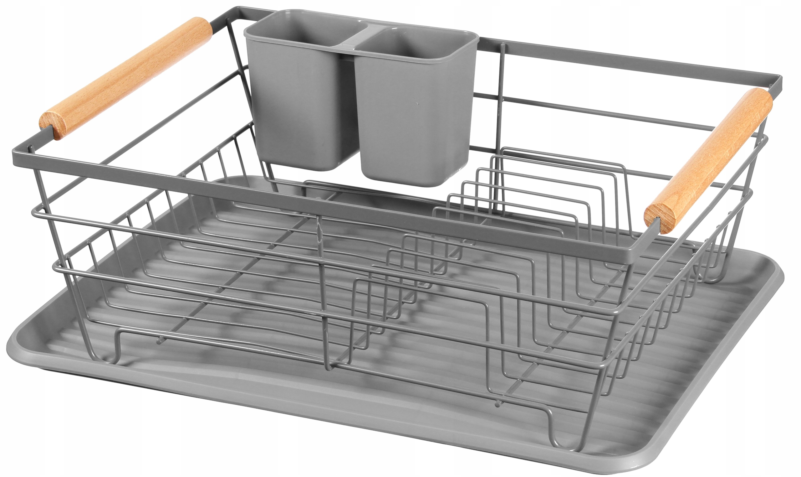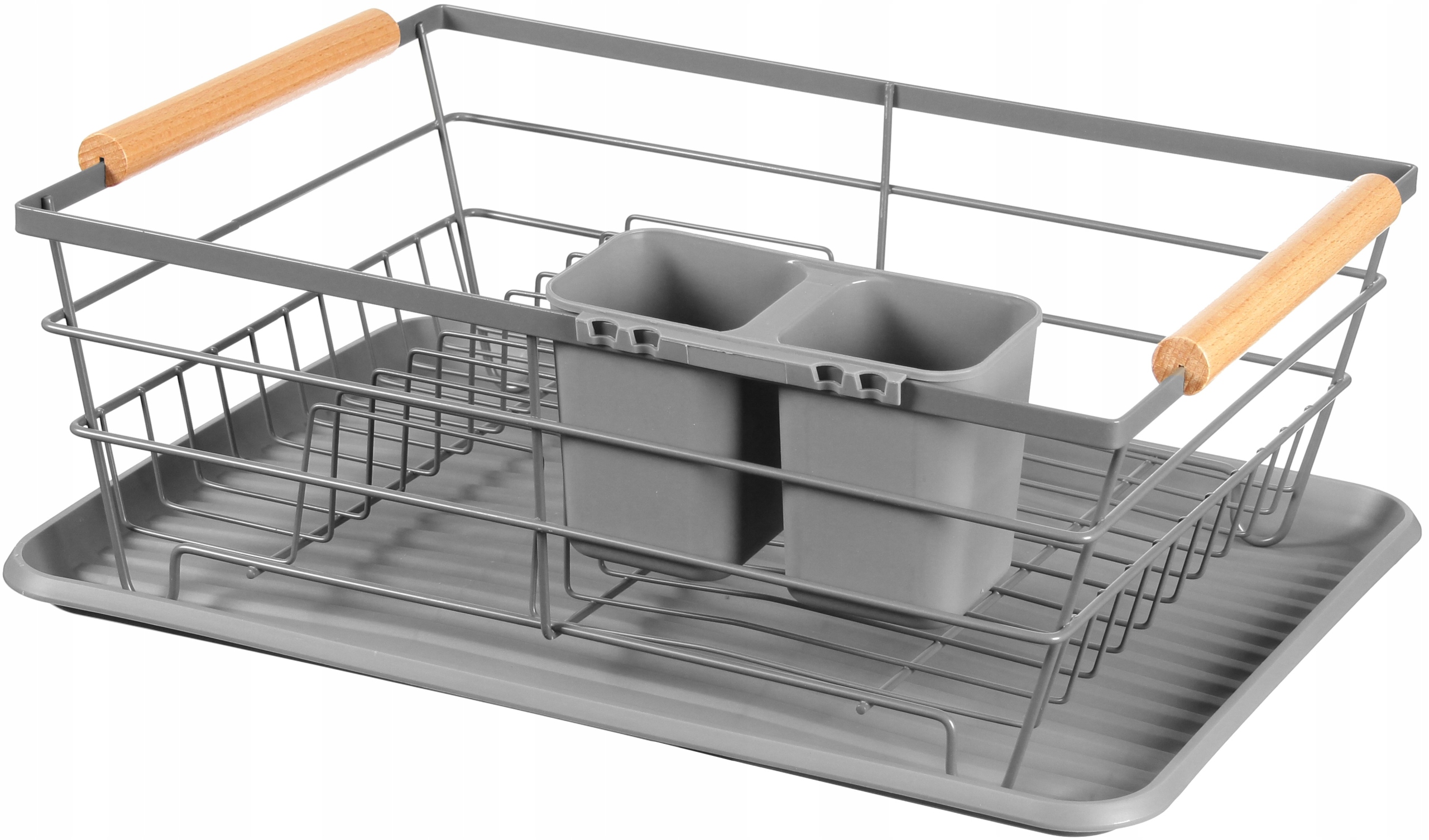 - Suszarka oraz ociekasz na sztućce wykonane z metalu pomalowanego proszkowo na kolor szary