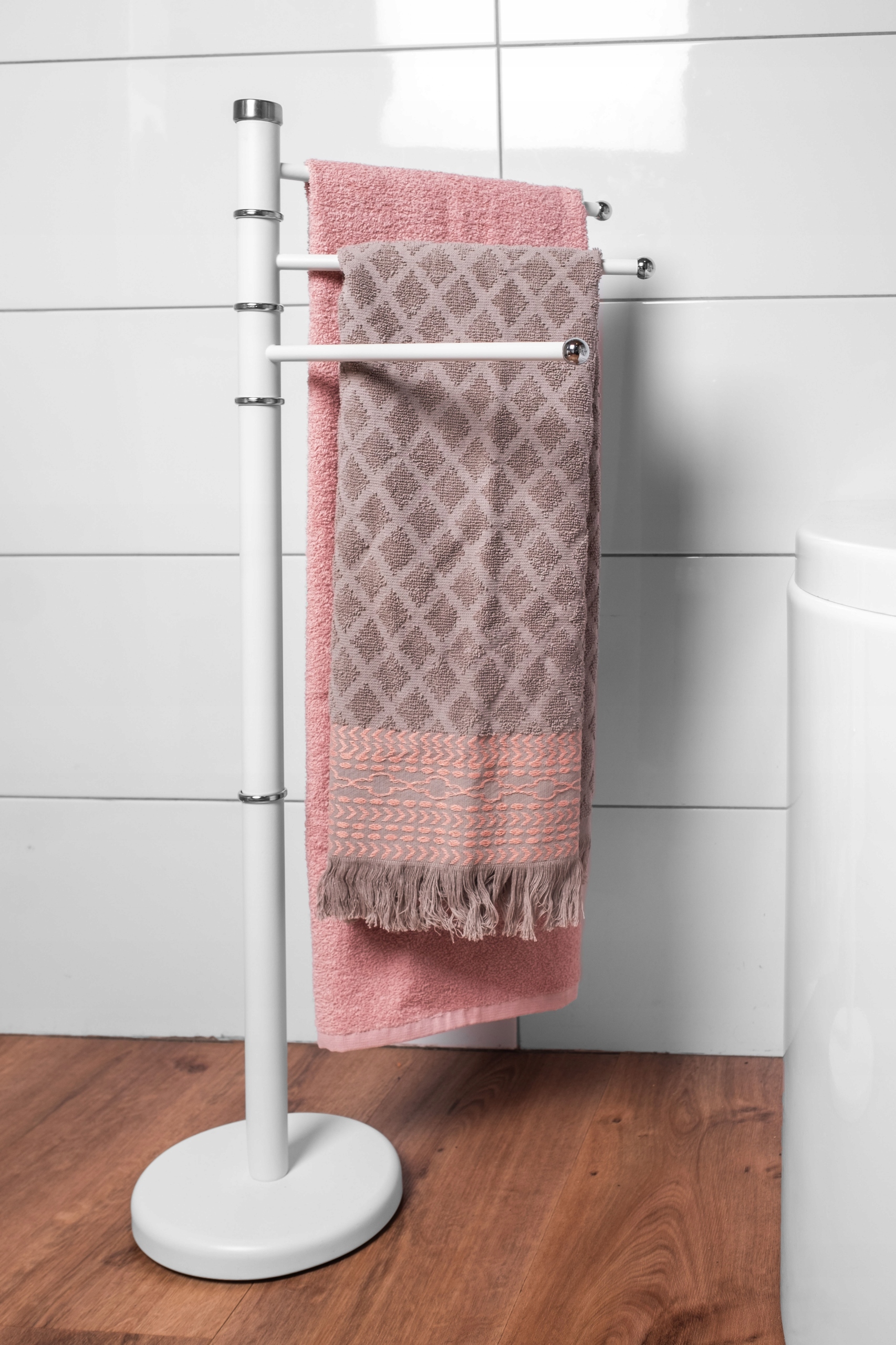 WIESZAK STOJAK PODŁOGOWY NA RĘCZNIKI OBROTOWY 3-RAMIENNY 3 POZIOMY BIAŁY